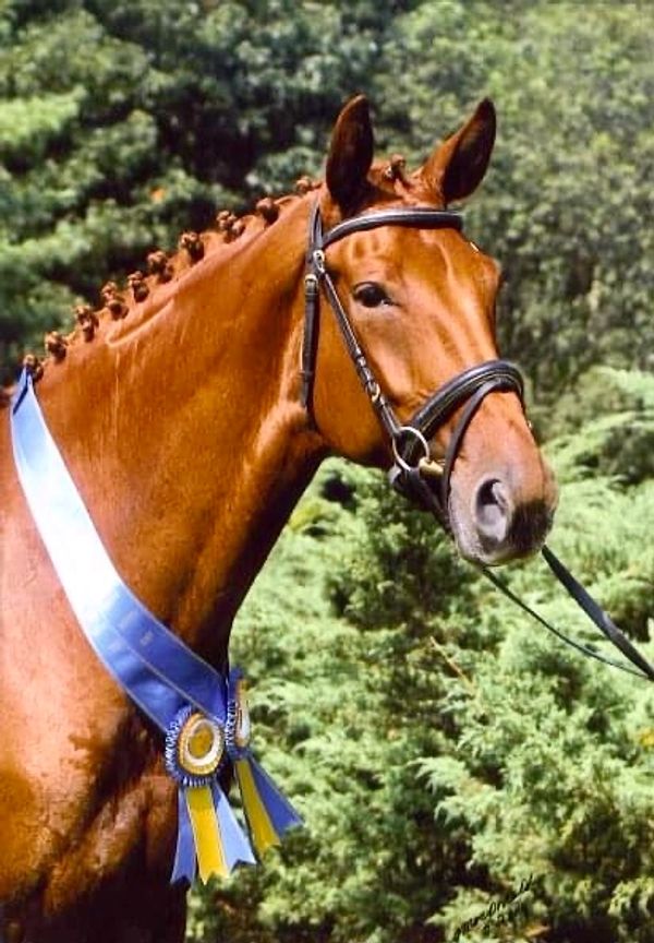 . In 2009 she won 2 USDF filly Championships and was USEF Zone 1 Reserve Hunter Breeding Champion. She was TOP in almost every disapline as a 2 year old winning the Future Event Horse Championship as Grand Champion,she was then crowned Reserve Champion in the United Stated Dressage Federation Championships, and Oldenburg Horse of the Year 2 Year old. In 2012 she was Reserve Champion Oldenburg in the 4 / 5 year old Material dressage classes. She also surprised me with at Devon coming in 3rd! Buzz continued her training competing in the Preliminary level until an injury brought her into the breeding shed