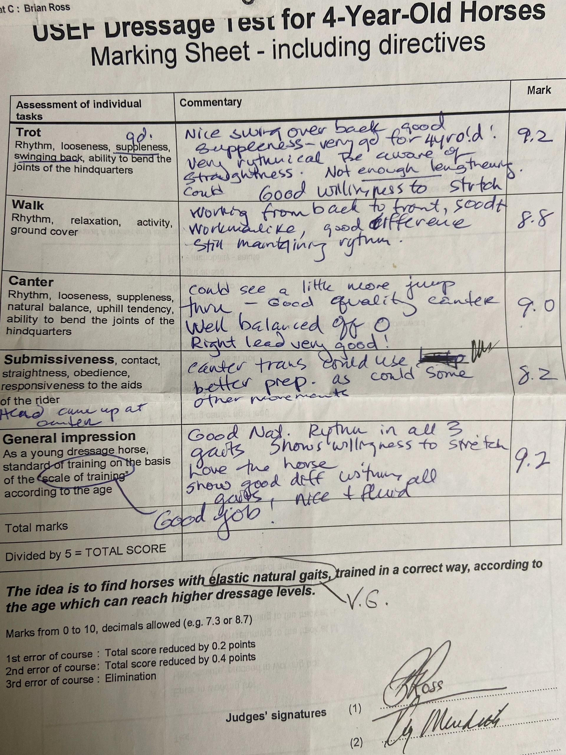 Wiegels Show.. High Princess also scored an overall 9.0 at her inspection and an 8.22 on her MPT and was reportedly offered for